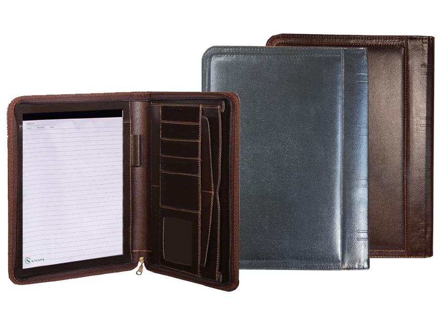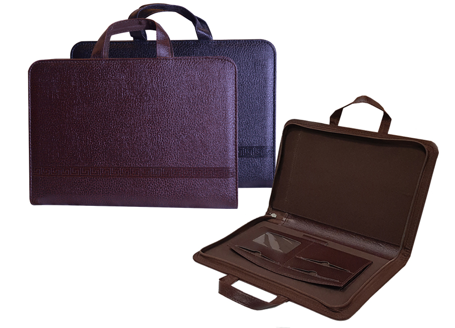 فلدر زیپ دار طرح چرم با عطف دو تیکه و جای مدارک